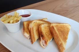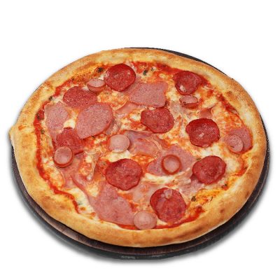 Ham, Mozzarella, Sausage, a drizzle of olive oil, and a sprinkle of salt